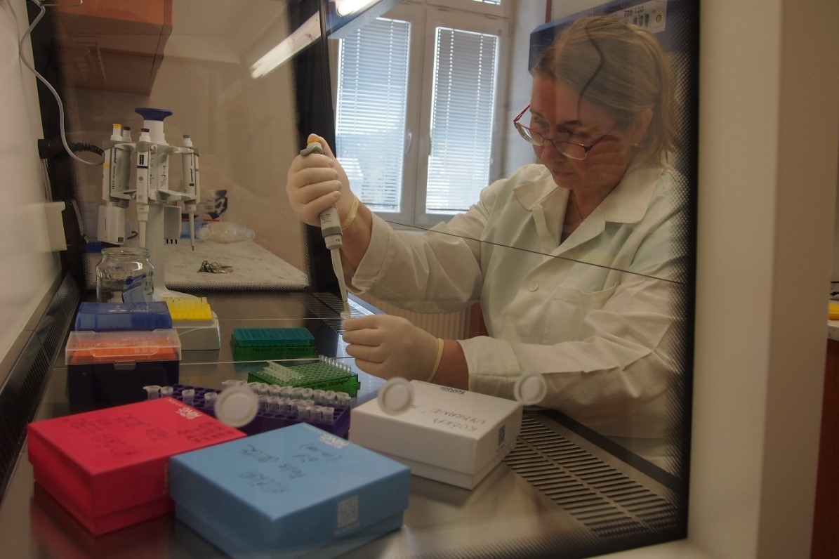 Foto 15: Izolácia DNA zo vzorky trusu v laboratóriu (zdroj: Ústav biologie obratlovců AV ČR)